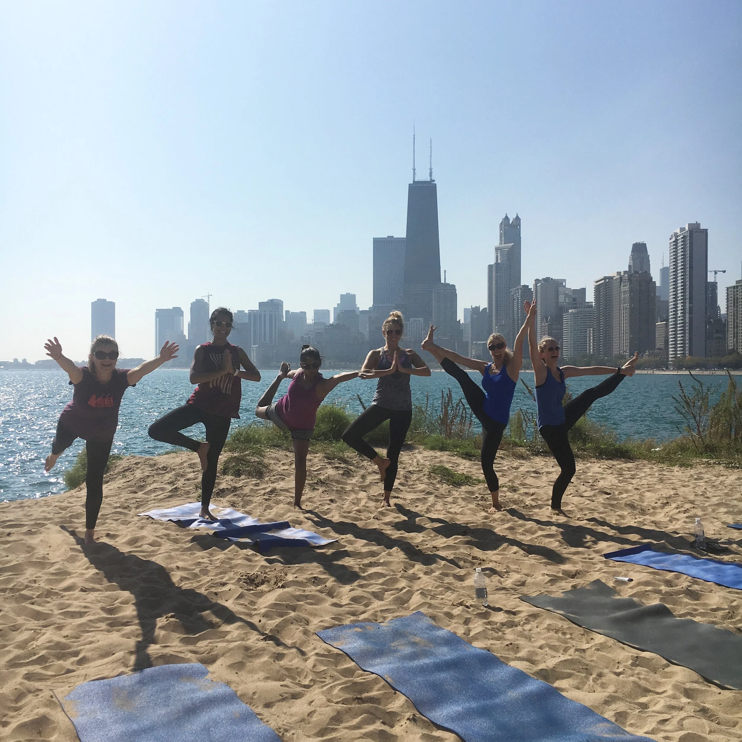 Sneak peek from one of our “Beach Yoga Bachelorette Parties” near the Chicago skyline!
