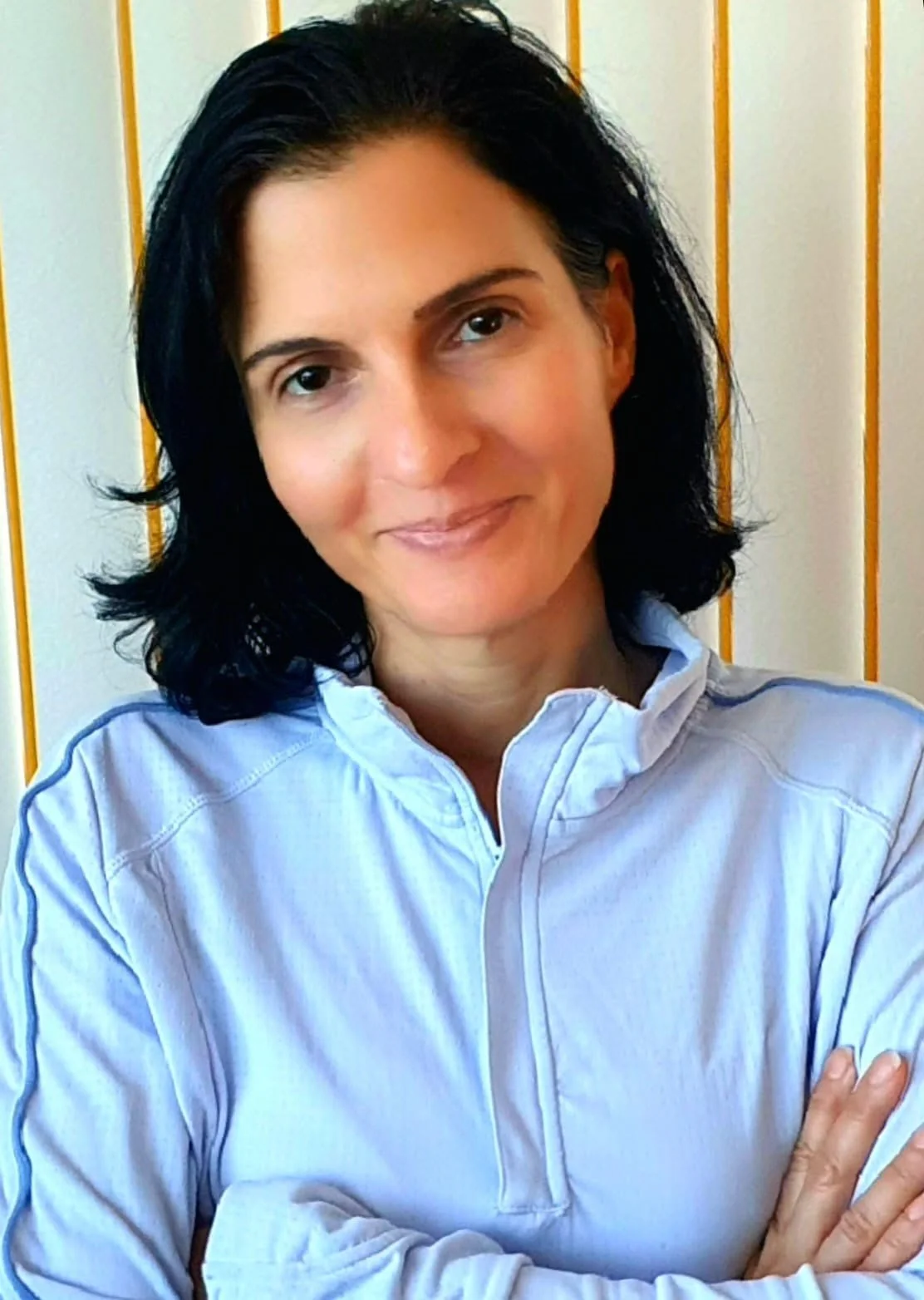 Amy (Teacher) is a certified yoga teacher, trained at YogaView in Chicago (200-hour RYT), with additional training in restorative yoga, chair yoga, sound healing, and Reiki Levels 1 & 2.