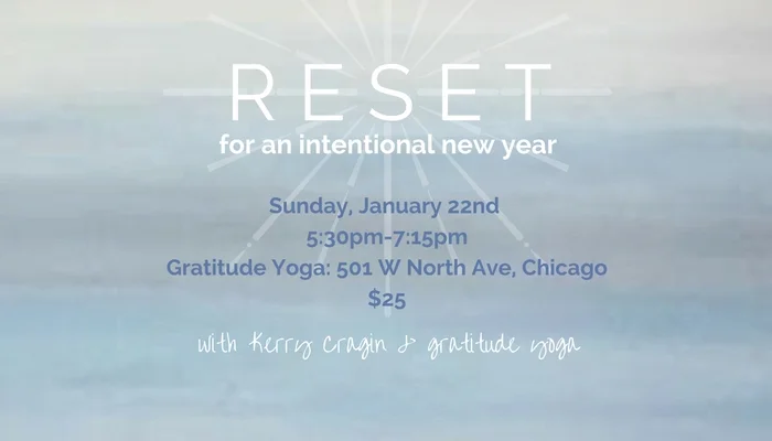 Join Kerry Cragin of R E S E T and Lisa Scurlock of Gratitude Yoga for a new look at new years resolutions. If you're like many of us, you may already be busy planning your healthy recipes, work-out routines, and maybe beating yourself up for not ending 2016 just as you imagined. That's exhausting! Kerry is a mindfulness coach, mental health and yoga therapist who specializes in helping people create more calm in their lives. This interactive workshop will teach you more awareness around your own stressors, habits and the ruts you fall into, and then guide you to create more intentional direction to build your best self for the new year. We'll explore themes of gratitude through a juicy flow, followed by a guided chakra inspired meditation in restorative poses to help you dig deeper into how you can make 2017 a year of self-compassion, thankfulness and forgiveness for yourself. We'll end the workshop putting ideas down on paper and you'll walk away with a special gift to keep attention on your intentions throughout the year.